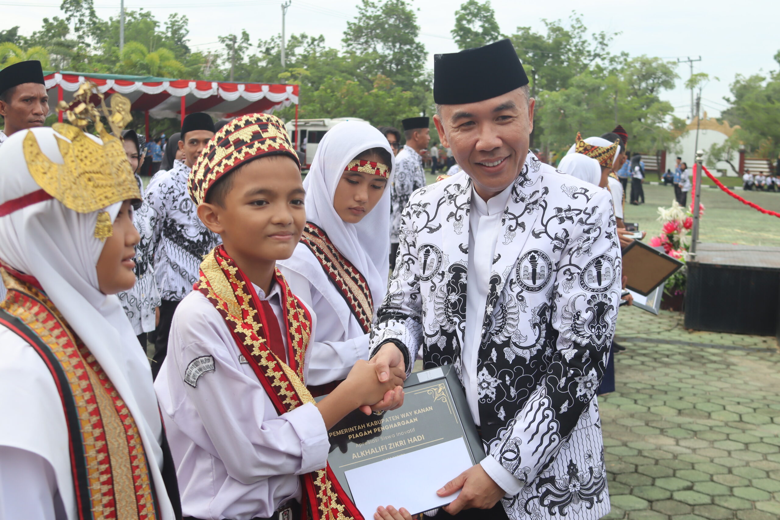 WAY KANAN (BL)– Pemerintah Kabupaten Way Kanan menggelar Upacara Peringatan Hari Guru dan HUT PGRI Ke-79 Tingkat Kabupaten Way Kanan Tahun 2024 di Halaman Buway Pemuka, Senin (25/11/2024).