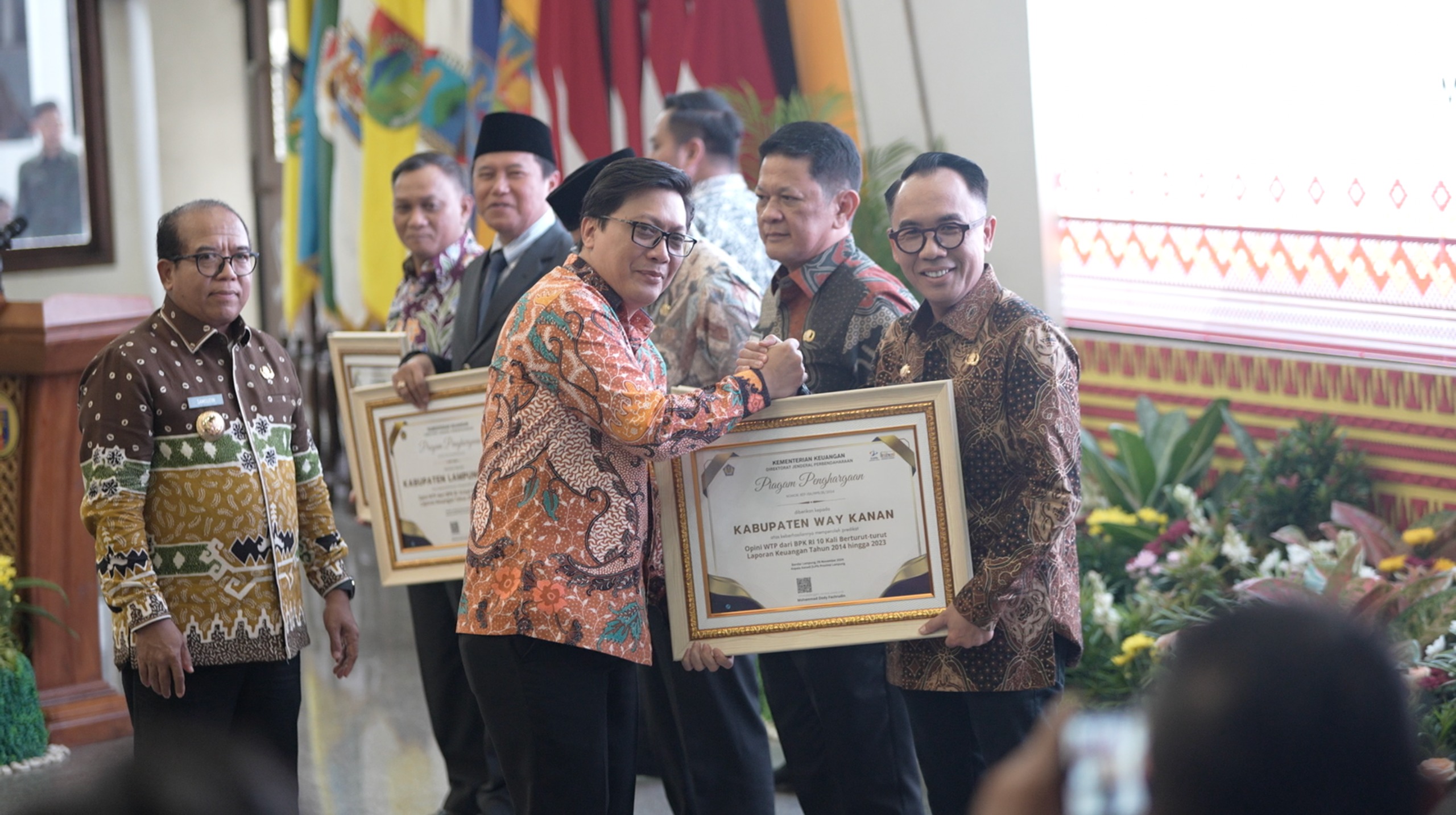 Diketahui, pada acara tersebut dilakukan Penyerahan Penghargaan kepada 6 (Enam) Pemerintah Daerah yang memiliki kinerja baik dalam pengelolaan keuangan, yang dibuktikan dengan hasil Opini Wajar Tanpa Pengecualian (WTP) yang diberikan oleh BPK selama periode 10 tahun berturut-turut.