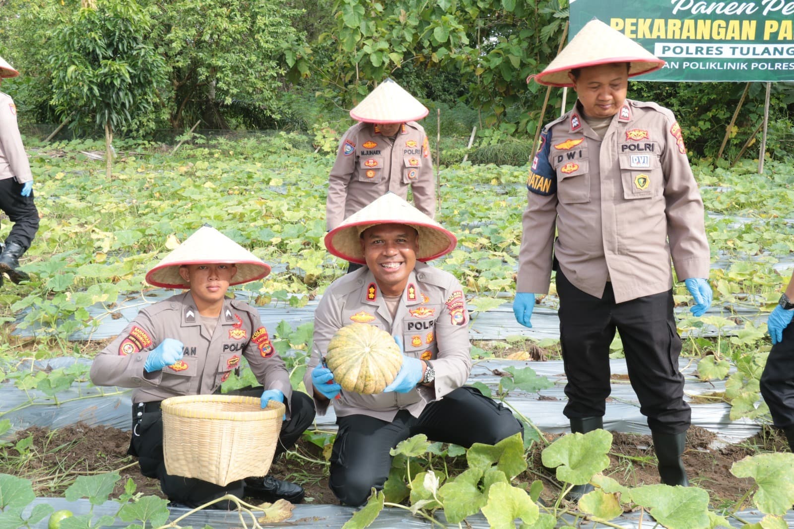 “Hari ini, saya bersama Plh.Wakapolres, Ketua FKUB Tulang Bawang, PJU Polres, personel Polres dan pengurus Bhayangkari Cabang Tulang Bawang, melaksanakan panen perdana di pekarangan pangan bergizi (P2B) yang berada di halaman Poliklinik Polres Tulang Bawang,” ucap perwira peraih Adhi Makayasa Akpol 2004.